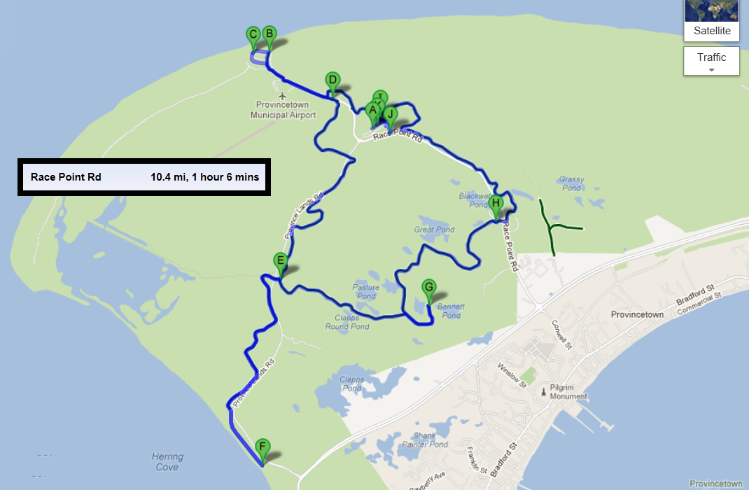 From Nickerson State Park to Wellfleet and back. Plus a loop inside the park and stops for the beach, lunch and ice cream! (Couldn’t do exact route we followed around the pond, but the mileage is close enough! 🙂