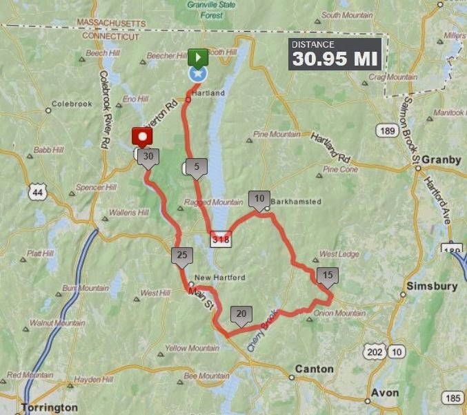 Again, I really liked the route – got to learn some roads I wasn’t very familiar with and see some nice houses 🙂 but I definitely would avoid a couple things also.. like Farmington River Turnpike which turns out to be a dirt road :-O.