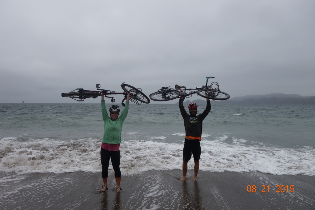 Rachel let me win this cross country race out of the goodness of her heart, although I remember getting a slight head start, so I’ll call it a tie.  We made to end our trip the same way we started: dipping our tires and getting our feet wet.