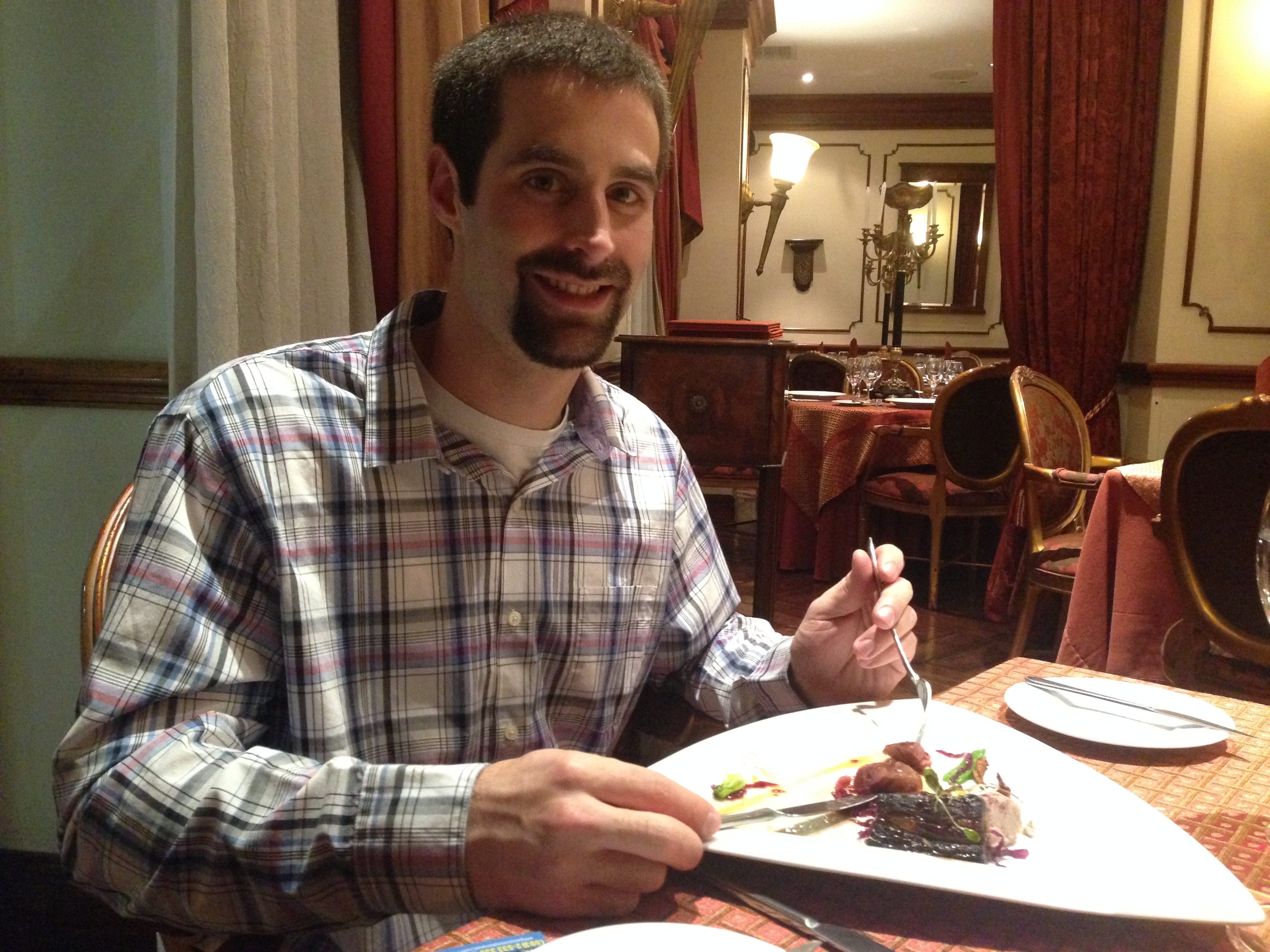 After some rest and showers, we were off again: our good friend, Tomas (who is from Quito and went to Union with us), had arranged for a taxi to and dinner at La Belle Époque.  We split a bottle of wine, bread, tuna rolls, duck and pork belly entrees, and finished it off with a chocolate sphere dessert (which they poured alcohol on and lit on fire before serving to us!).   We nearly had the place to ourselves; it was beautiful, with candles to set the mood.  Kudos to Tomas on the fantastic arrangement; we really appreciated it!   The only downside was that we felt slightly under dressed.