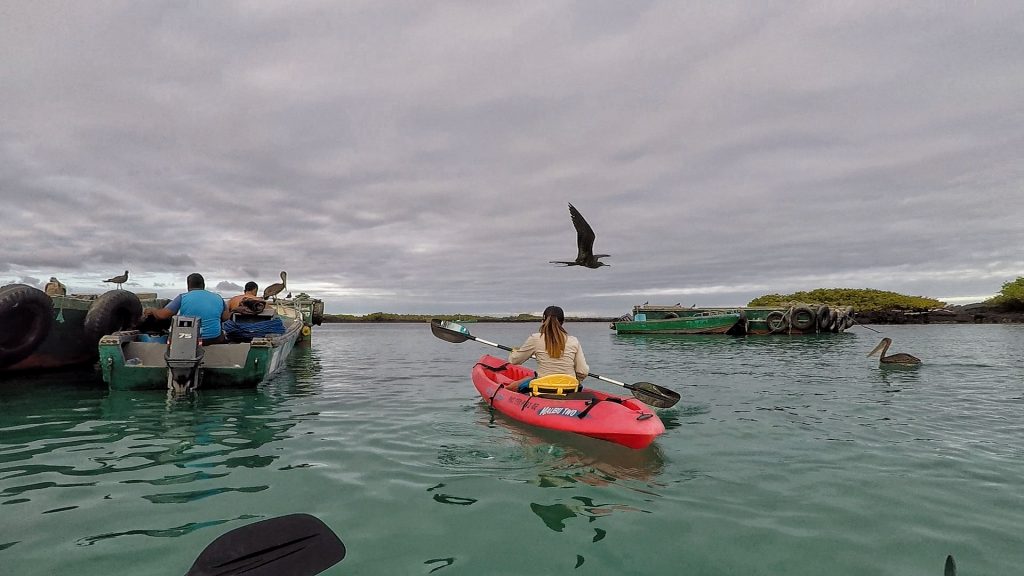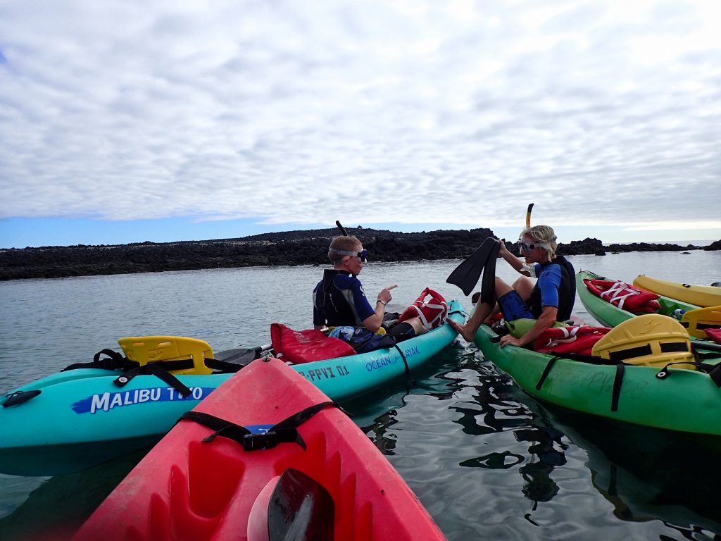 We paddled around the bay and saw our first Galapagos penguins along with the other typical marine life, then hopped in for another quick snorkel session. It wasn’t as good as the lava tunnels, but still fun. Once again the water was cold (although not quite as bad as at Kicker Rock!), but that’s our fault for getting married in November!