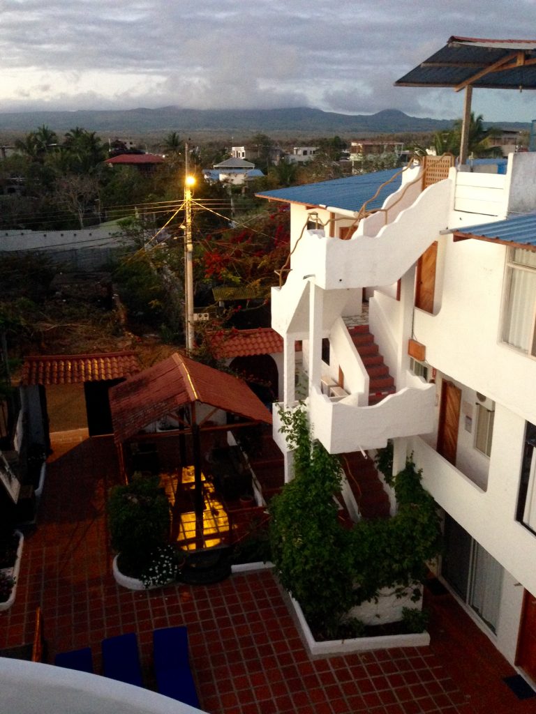 After transferring to water taxis and setting foot on the dock, we took a short walk through town, then piled into a few (land) taxis en route to our hotel, La Casa de Judy.  It was a beautiful hotel, with an outdoor eating area on the first level beside the pool, and 2 levels of rooms above, with a roof deck and penthouse room beyond.