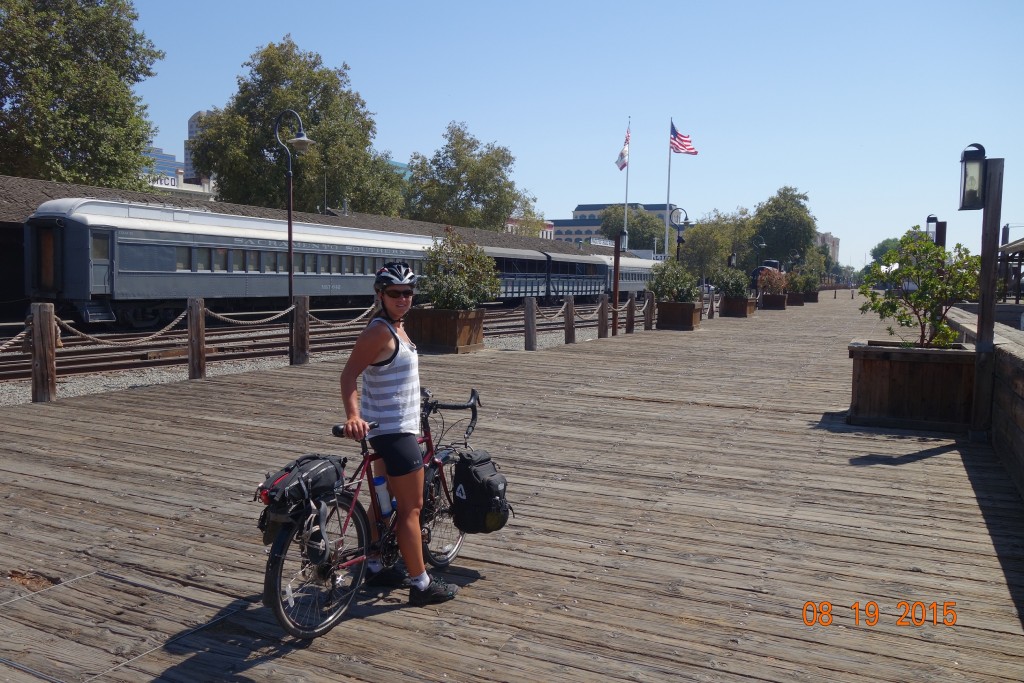In Folsom we got on a great bike path that parallels the American River. The path continued all the way through Sacramento, and it was bustling with other cyclists. We were very tempted to jump in the water in a few spots where kids seemed to be greatly enjoying themselves.